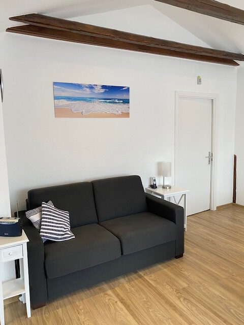 Die Ferienwohnung 1 liegt in der ersten Etage und ist für maximal 2 Personen geeignet. Die Wohnung besteht aus einem kombinierten Wohn-Schlafzimmer mit Küchenzeile und einem Bad mit Dusche/WC. Es sind zwei getrennte Betten vorhanden und eine klappbare Schlafcouch (1,40 x 2,00 m).